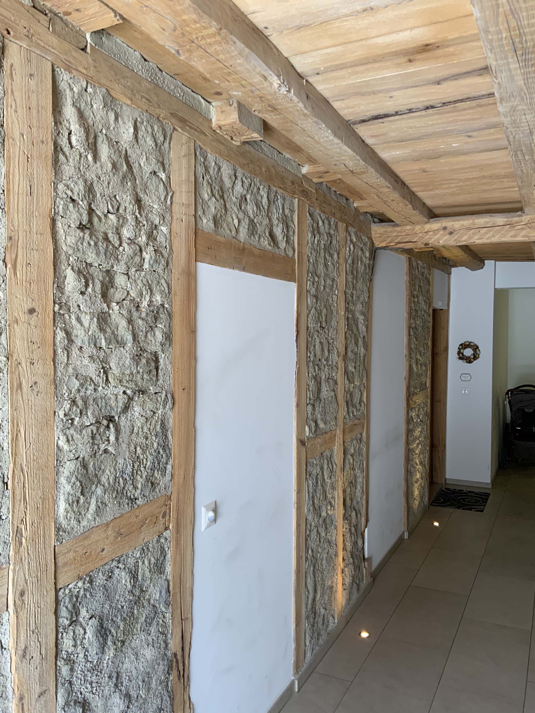 Historische, über 3 Meter hohe Gewölbe aus altem Bruchstein-Gemäuer wurden Bestandteil des Hauses und der 6 Wohnungen mit Fussbodenheizung und allem erdenklichen Komfort. Bereits im Eingangsbereich zum Flusshaus werden die Bewohner und die Gäste durch das ursprüngliche Bruchstein-Mauerwerk und die 150 Jahre alte Balkendecke auf die aussergewöhnlichen Wohnungen eingestimmt.